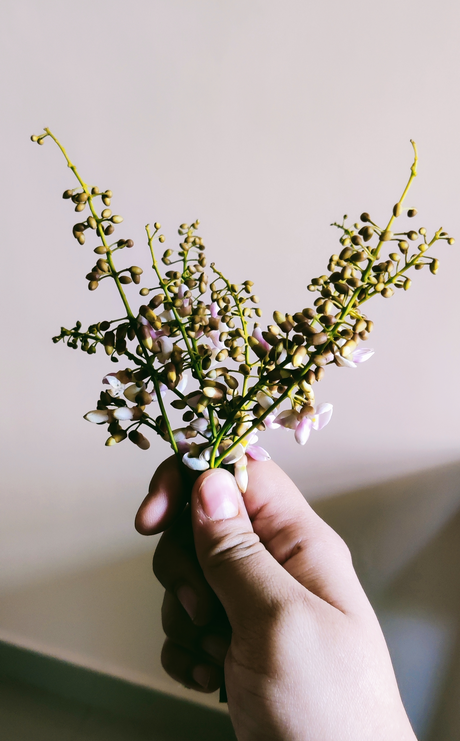 The next day, the Karanj had transformed. I liked to believe that the murmuring fallen leaves and the enchanting bird of prey had coaxed the tree to wake up. The shiny lime and burgundy green leaves soon flushed its boughs. But that was just the beginning. Soon after, tiny round buds began to dot its twigs and branches. And before I could marvel at them, the lavender-white flowers began to bloom in clusters. Many small butterflies flitted among the flowers all day long, and fuzzy bees got drunk on nectar with reckless abandon. After the flowers had withered, the green seed pods began to form.
